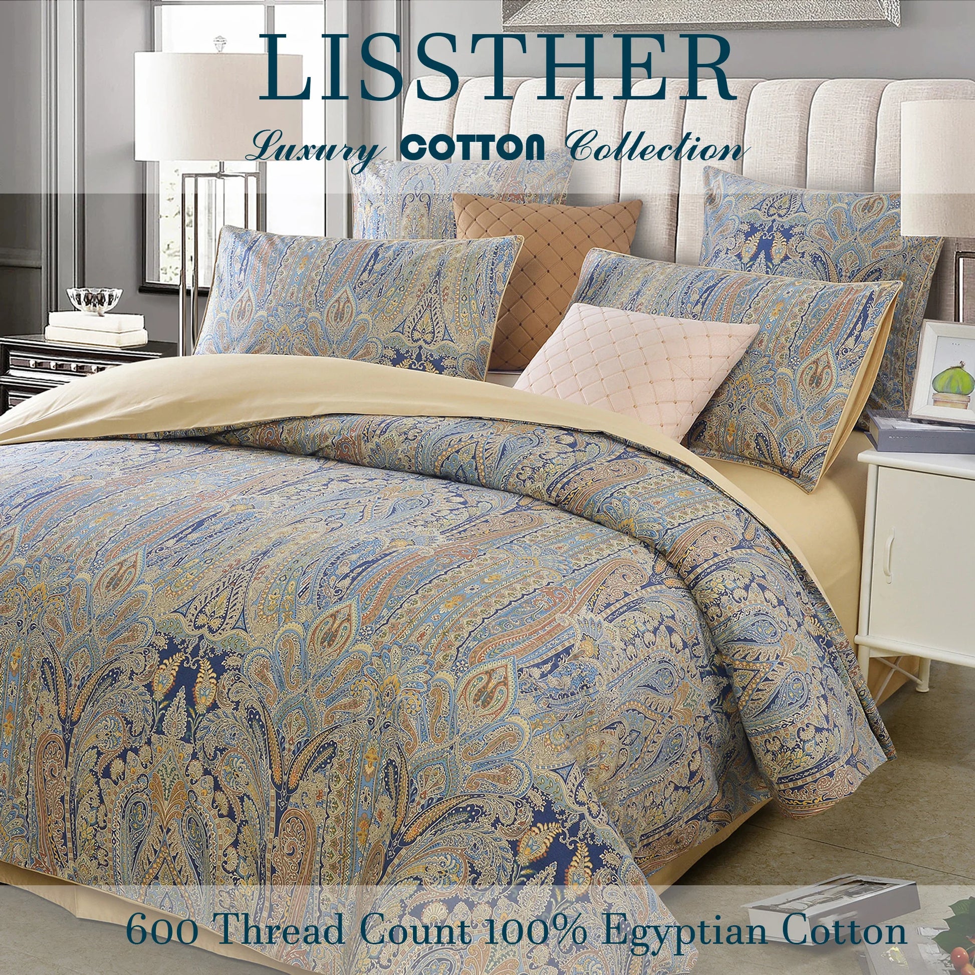 Slip into hotel-soft luxury with the LISSTHERCN 3 Piece 600TC Egyptian Cotton Duvet Cover Set, delivering breathable, premium comfort for every night, for every season.